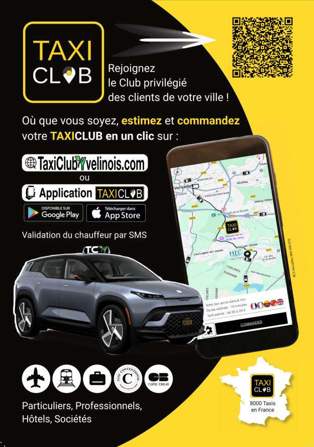 ✅ Grâce à son système de réservation en ligne (site web ou App Taxi Club) vous pouvez le réserver efficacement, près de vous, dans les Yvelines.